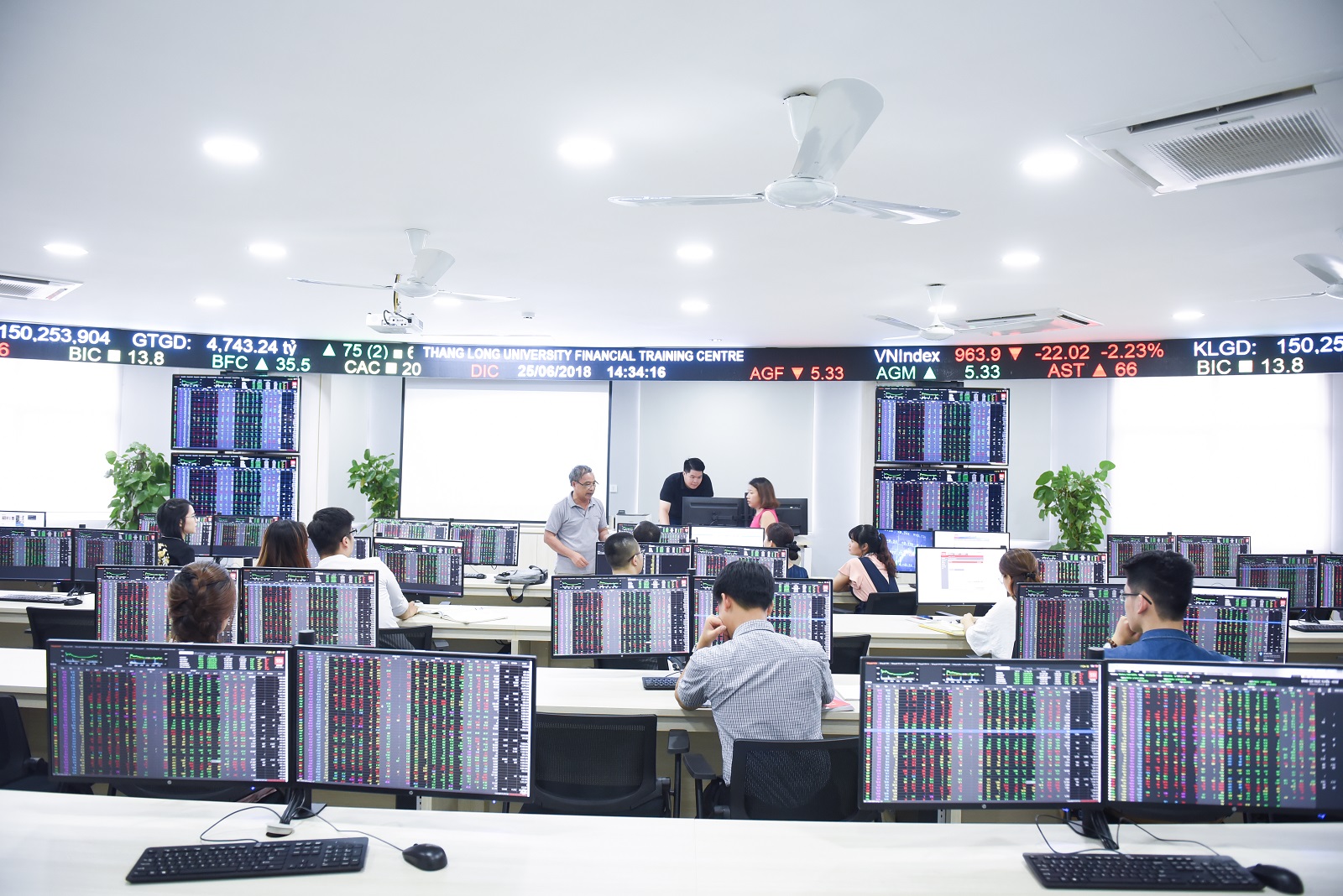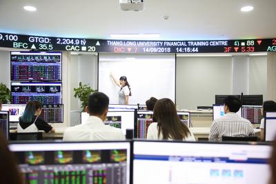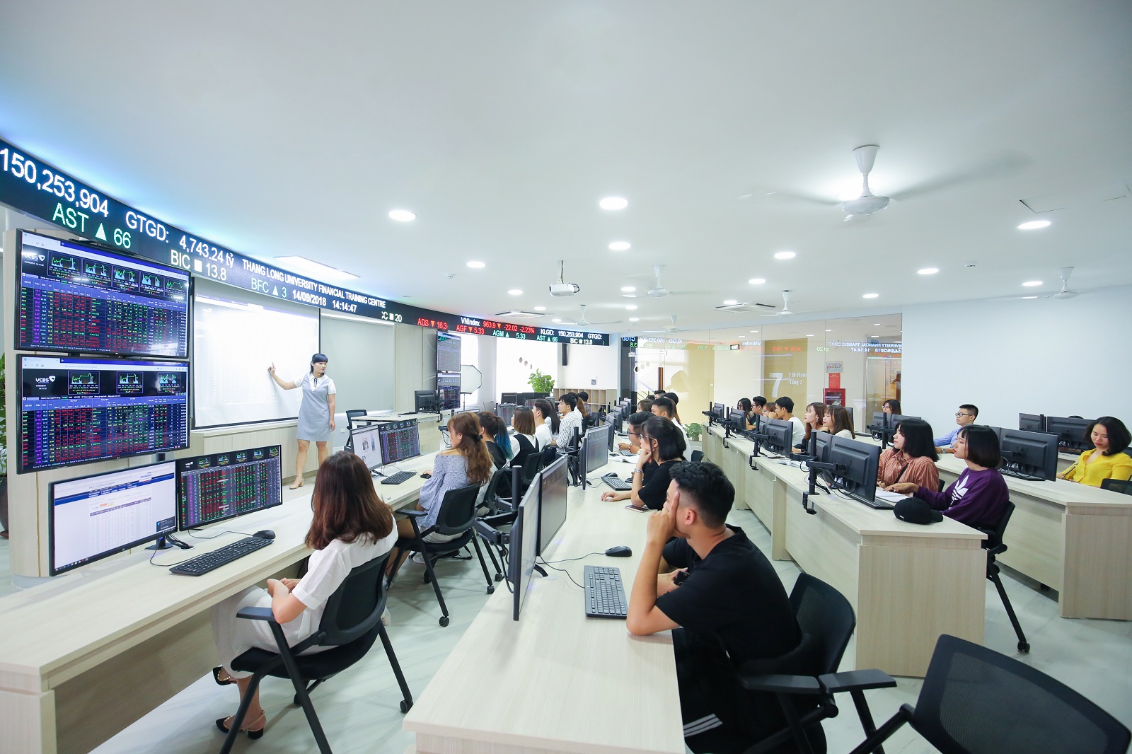 Trung tâm mô phỏng Ngân hàng - Chứng khoán tại Tầng 7 của trường được thiết kế theo tiêu chuẩn quốc tế với hệ thống máy móc, trang thiết bị hiện đại cùng phần mềm và cơ sở dữ liệu bản quyền, hỗ trợ tối đa cho sinh viên thực hành học tập, phân tích dữ liệu, nghiên cứu chuyên sâu. Đặc biệt hơn, với sự ra đời của Trung tâm Kết nối Đại học Doanh nghiệp (UEC) sẽ đem tới nhiều cơ hội thực tập, việc làm cho cử nhân tốt nghiệp trong khoa.