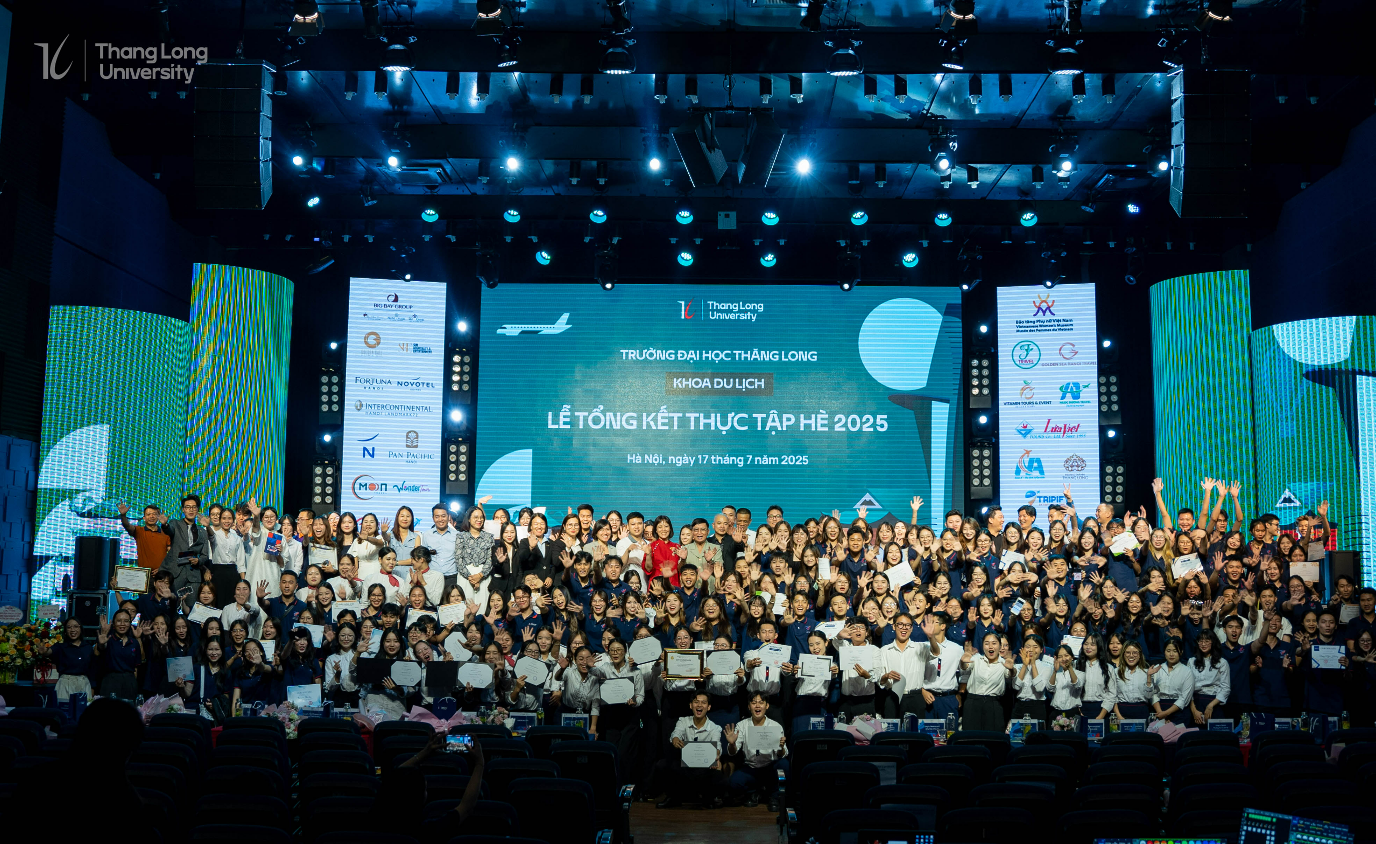 Lễ Tổng kết Thực tập Hè 2025 của Khoa Du lịch - Trường Đại học Thăng Long đã diễn ra vào ngày 17–18/07 với sự tham dự của Ban Giám hiệu, hơn 550 sinh viên và đại diện từ hơn 50 doanh nghiệp đối tác. Sự kiện khép lại mùa hè nhiều trải nghiệm, ghi dấu trưởng thành của sinh viên với những kết quả ấn tượng: hơn 60% được đánh giá xuất sắc, 100% doanh nghiệp hài lòng và nhiều sinh viên được giữ lại làm việc sau kỳ thực tập.