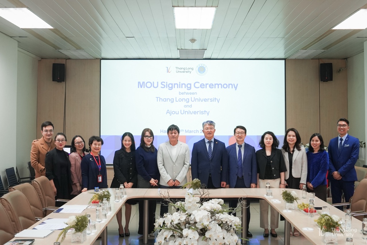 Ngày 10/3/2025, Trường Đại học Thăng Long và Đại học Ajou, Hàn Quốc đã chính thức ký kết Biên bản Ghi nhớ hợp tác (MOU), đánh dấu một cột mốc quan trọng trong quan hệ hợp tác giữa hai trường.