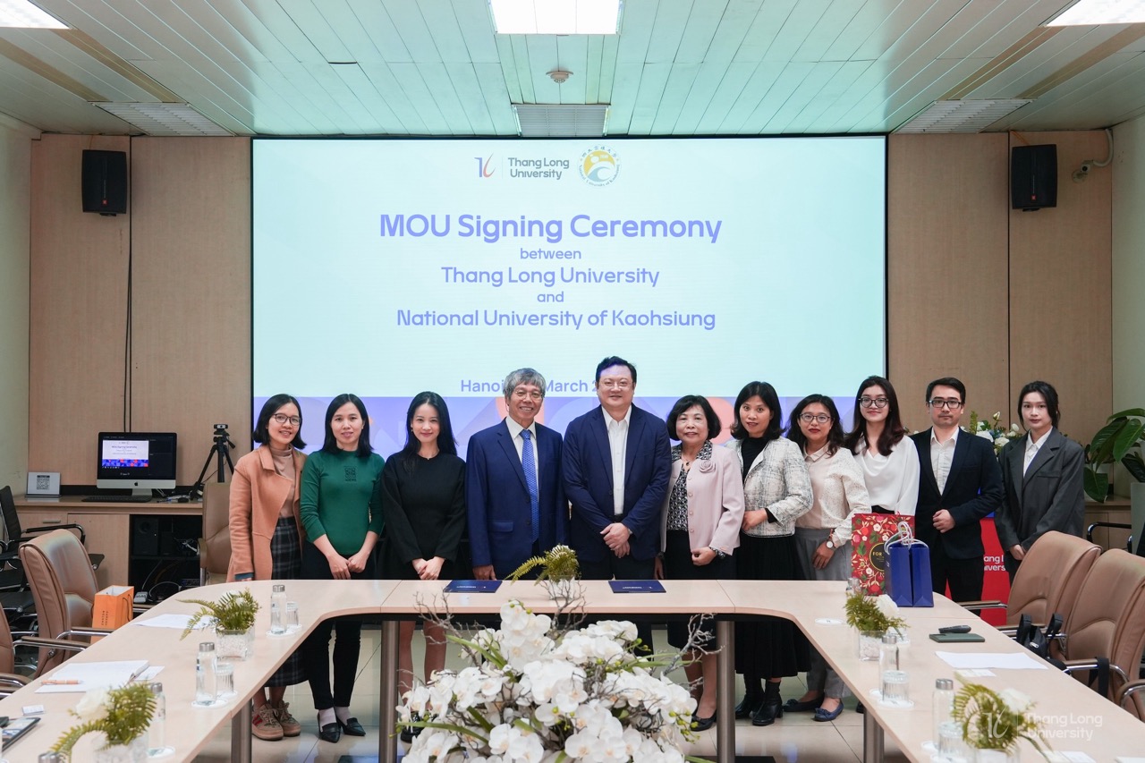 Ngày 11/3/2025 vừa qua, Trường Đại học Thăng Long đã đón tiếp đoàn Đại học Quốc lập Cao Hùng (National University of Kaohsiung - NUK, Đài Loan) tới thăm và trao đổi hợp tác. Tham dự buổi làm việc có Phó Hiệu trưởng hai Trường cùng đại diện các đơn vị liên quan.